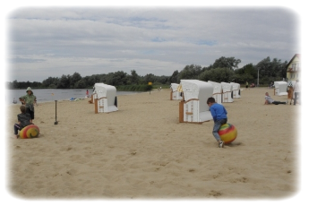 Bliskość plaży, a na niej - czysty pisek, molo, mini plac zabaw, wypożyczalnia sprzętu wodnego.